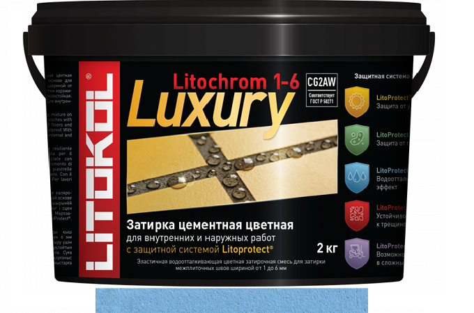 Эластичная цементная затирка Litokol Litochrom 1-6 Luxury ведро 2кг, C.190 васильковый