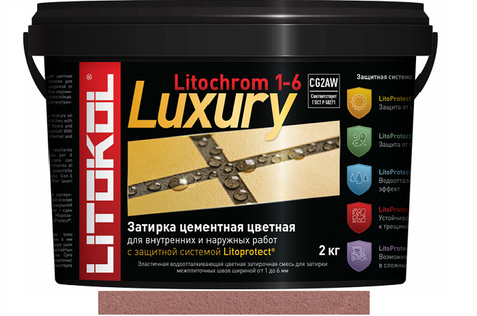 Эластичная цементная затирка Litokol Litochrom 1-6 Luxury ведро 2кг, C.90 красно-коричневый