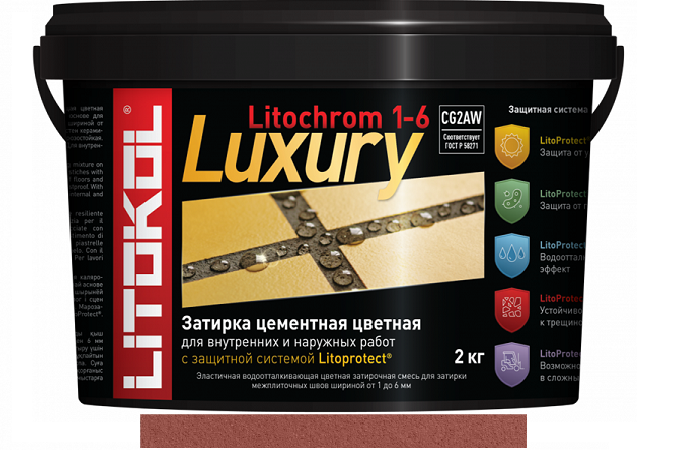 Эластичная цементная затирка Litokol Litochrom 1-6 Luxury ведро 2кг, С.510 охра