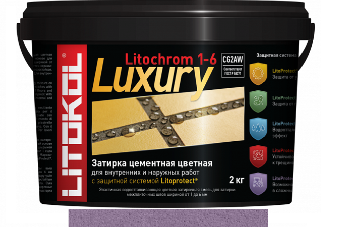 Эластичная цементная затирка Litokol Litochrom 1-6 Luxury ведро 2кг, С.670 цикламен